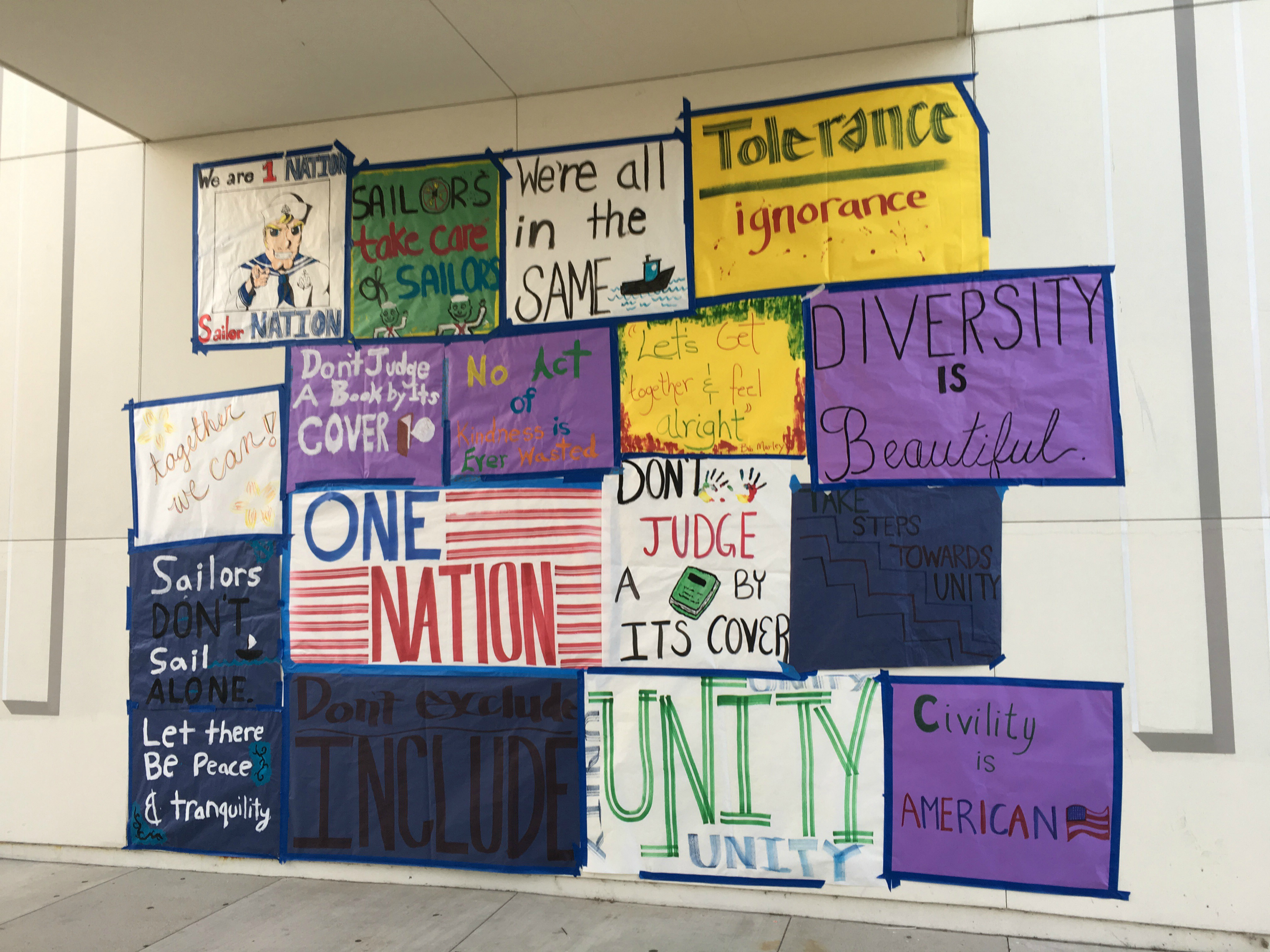 Another recent election-related initiative at Newport Harbor High School had BRIDGES students making posters promoting unity and posting them all over campus, so that students could see the message the day after election.